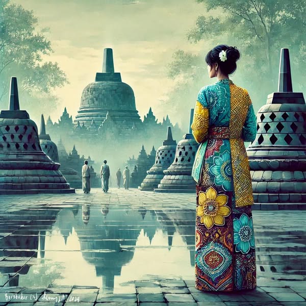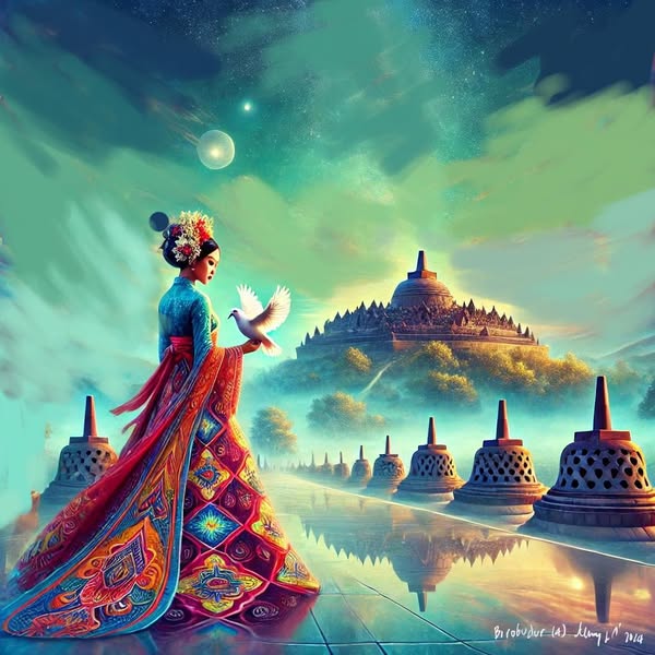 Borobudur dalam lukisan Denny JA, dengan asisten AI